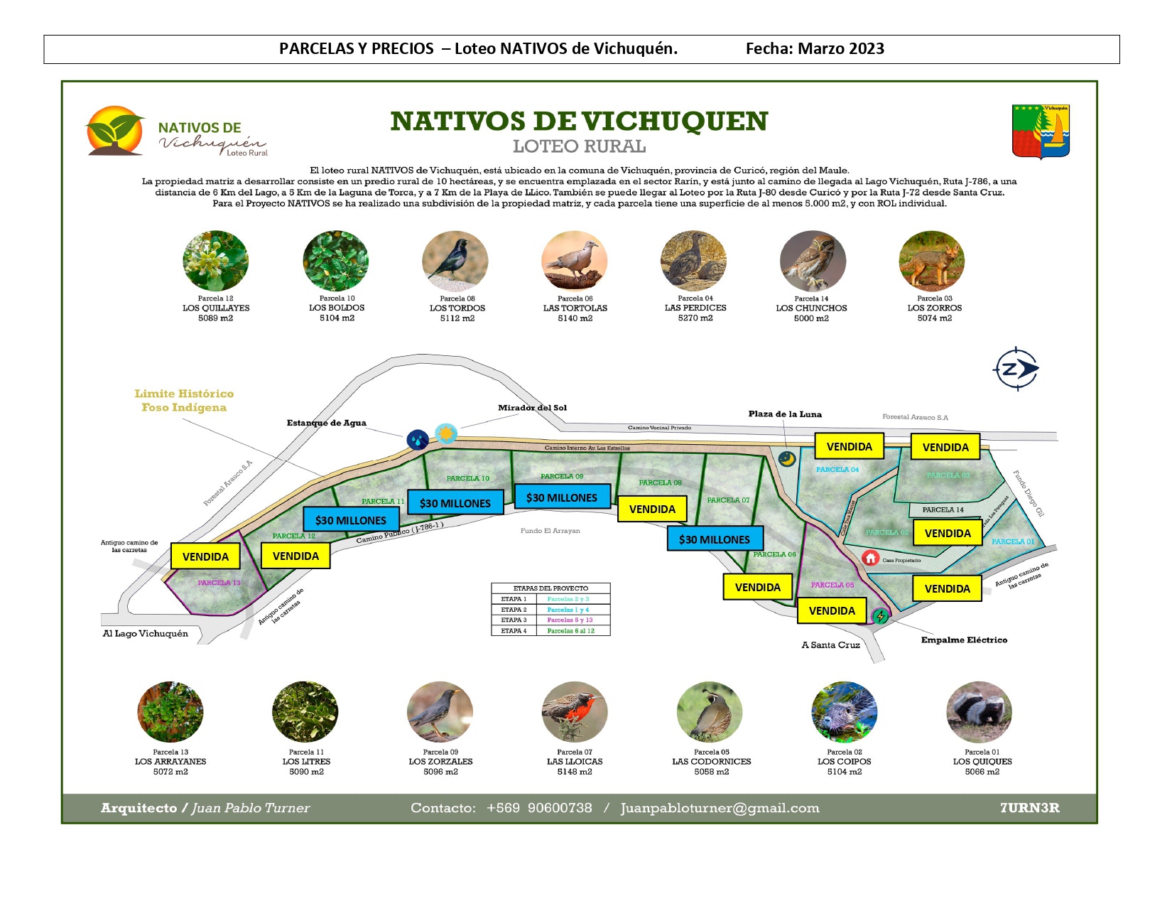 Para el proyecto NATIVOS DE VICHUQUEN, se ha realizado una subdivisión de la propiedad matriz, y de ella una parcelación rural con lotes de 5.000 metros cuadrados (m2), donde cada parcela tendrá su propio número de ROL de inscripción, constituyendo así una propiedad independiente.