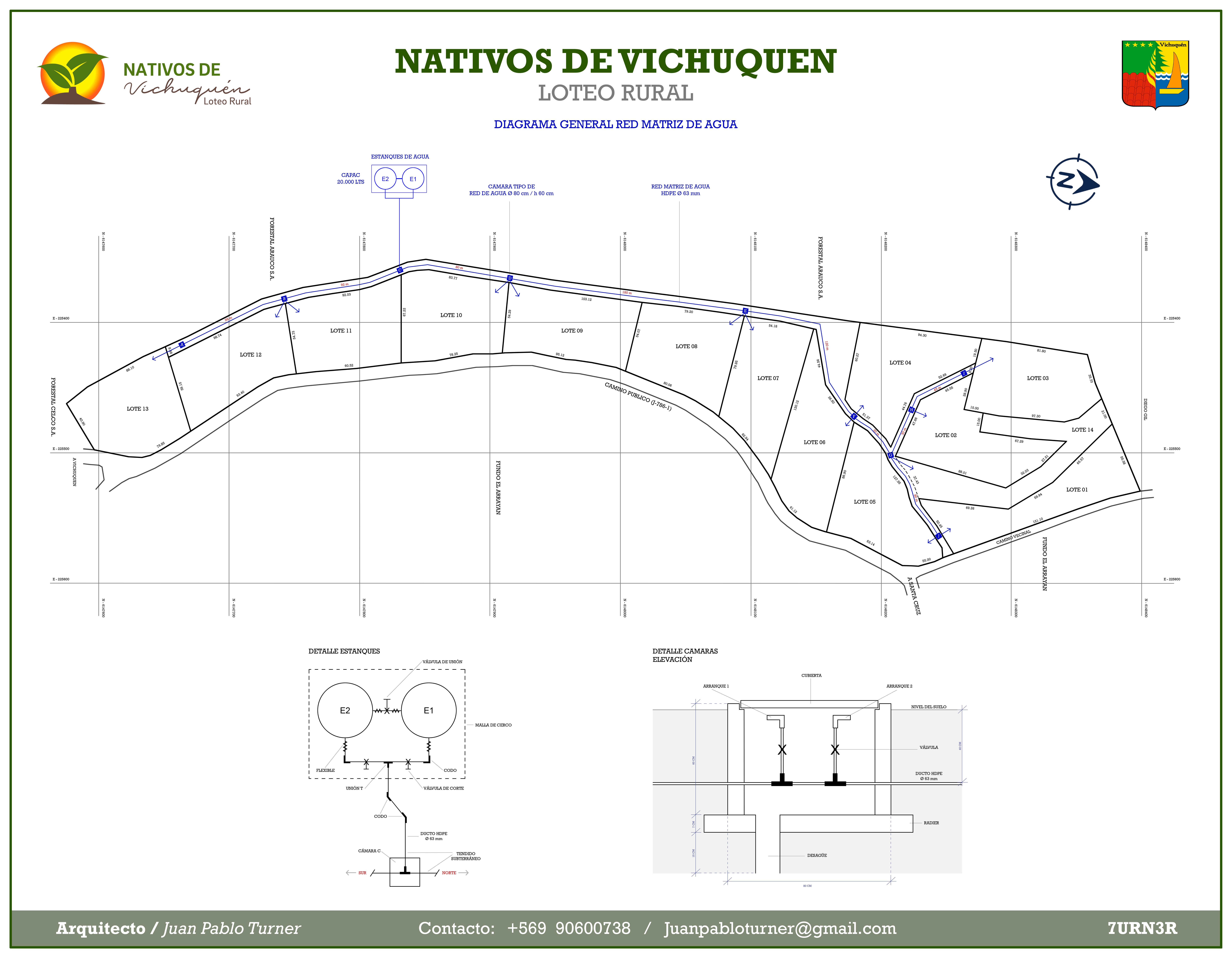 Por tratarse de una propiedad rural (agrícola o forestal), se ha desarrollado de acuerdo a la reglamentación del SAG (servicio Agrícola y Ganadero), organismo del Ministerio de Agricultura, con planos aprobados por este organismo.
