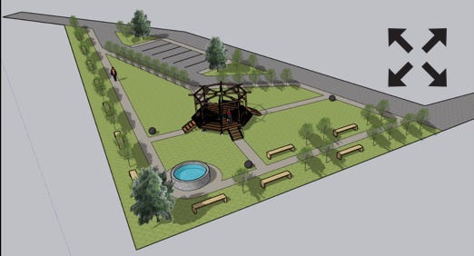 Camino interior, mirador, plaza, red de agua y electricidad.